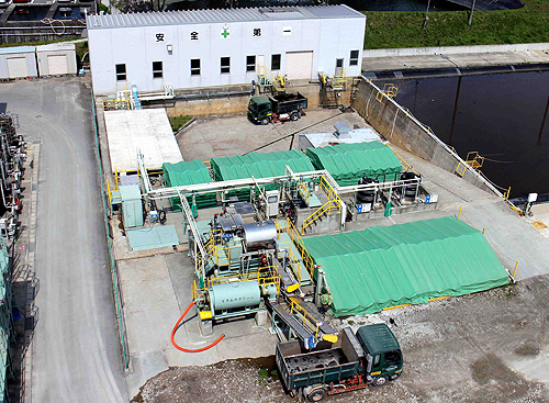 本施設は、主に工場・下水処理場・し尿処理場、清掃工場等の廃棄物処理施設や、下水道の暗渠・側溝の清掃及び建設工事から発生する高含水率の汚泥を処理しています。また、排出された脱水汚泥については、隣接する弊社所有の最終処分場において一貫して処分を行っております。